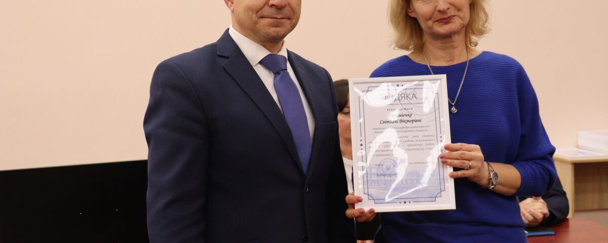 Вітаємо старшого викладача кафедри Світлана Веремієнко з відзнакою за сумлінну працю. Бажаємо успіхів!