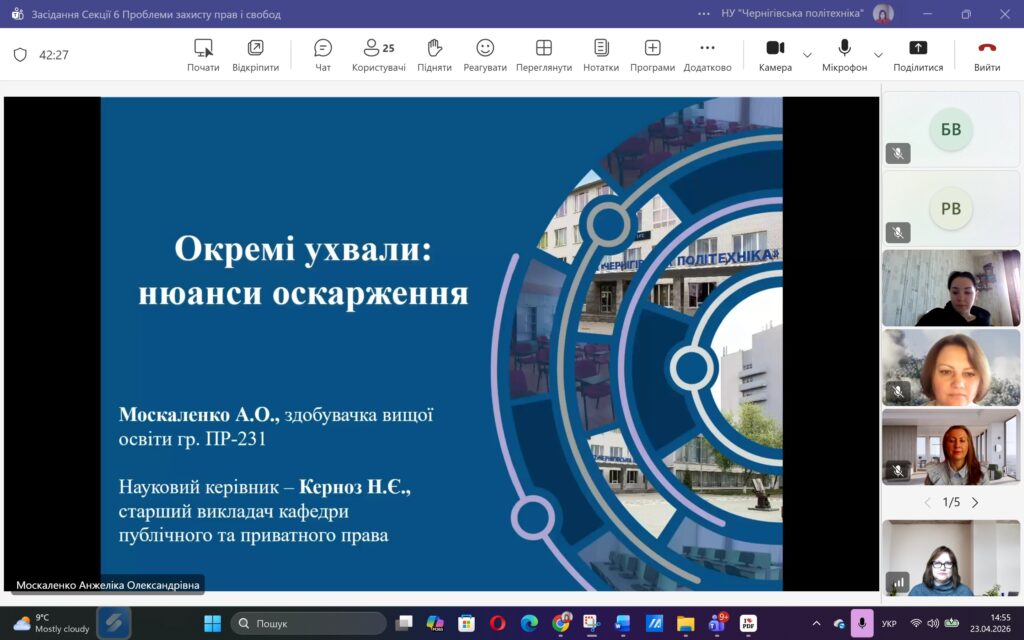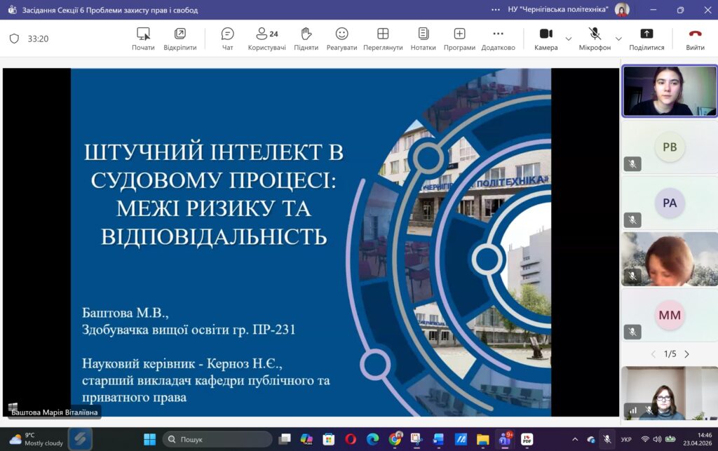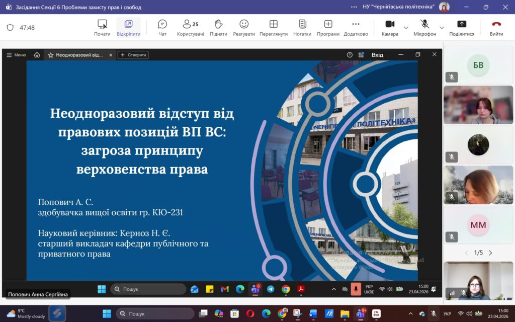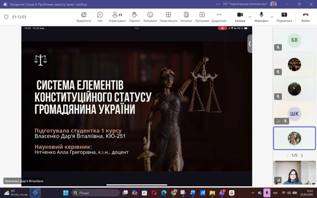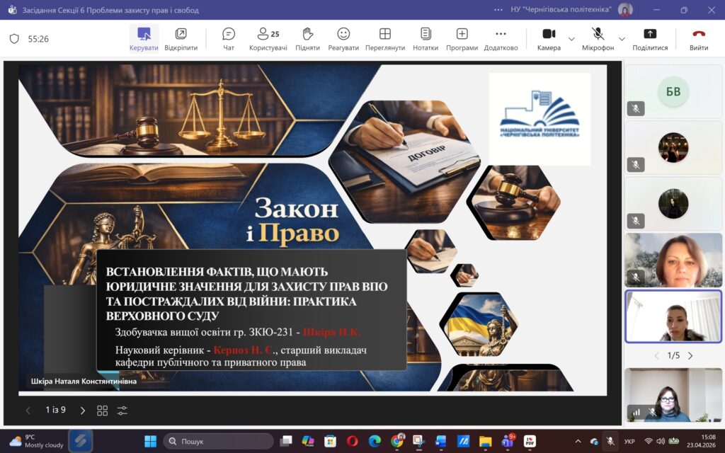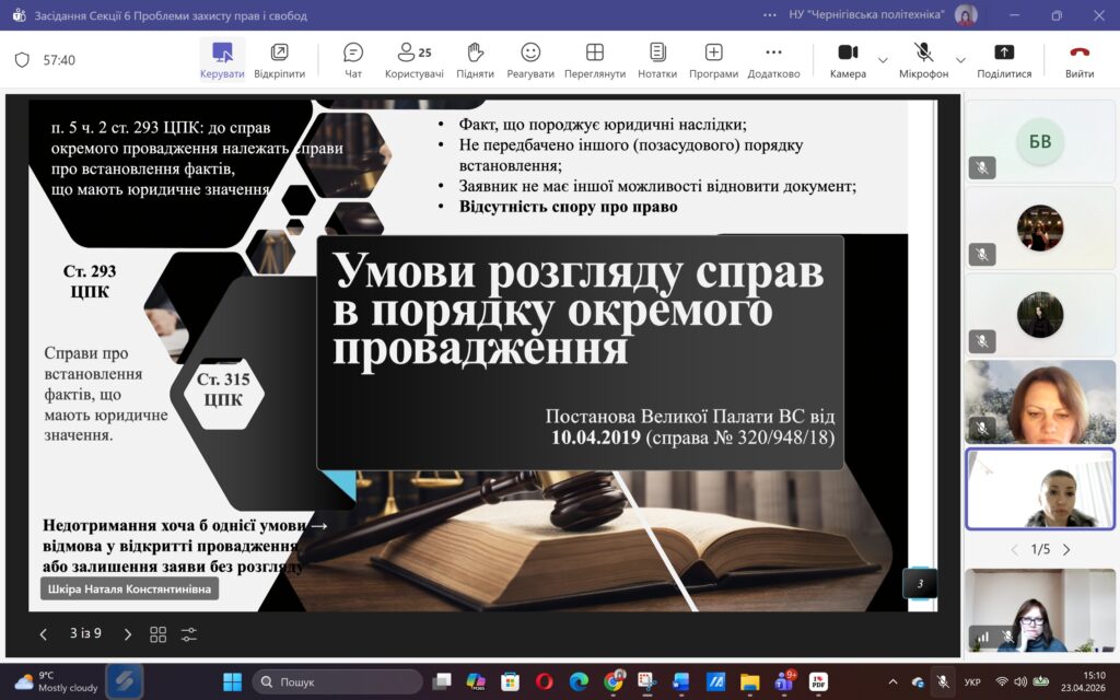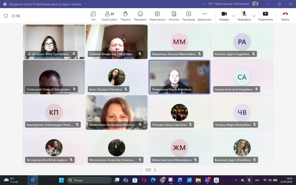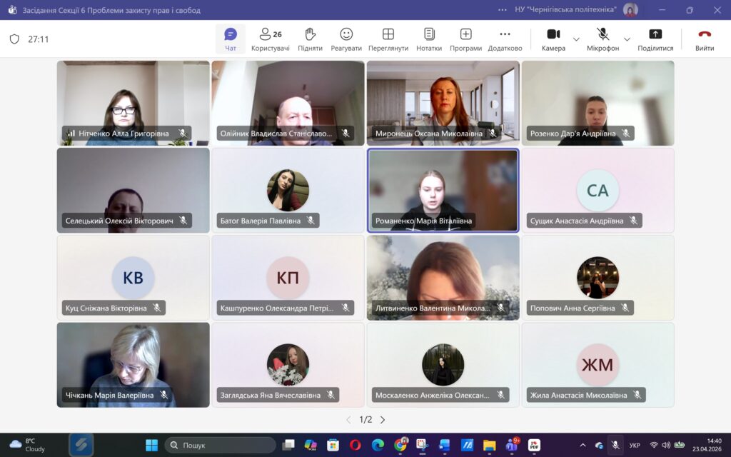 Сьогодні, 23 квітня 2026 року, у межах ХVІ Міжнародної науково-практичної конференції «ЮНІСТЬ НАУКИ – 2026» відбулося засідання Секції 6 «Проблеми захисту прав і свобод людини і громадянина».