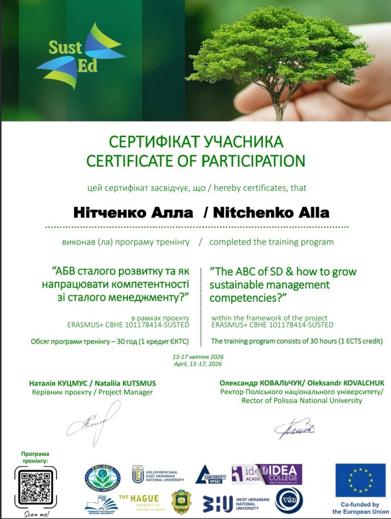 Представниці кафедри взяли участь у серії тренінгів у межах проєкту Erasmus+ SUSTED