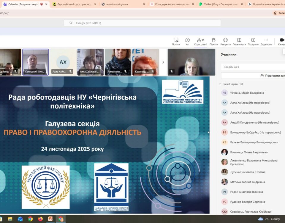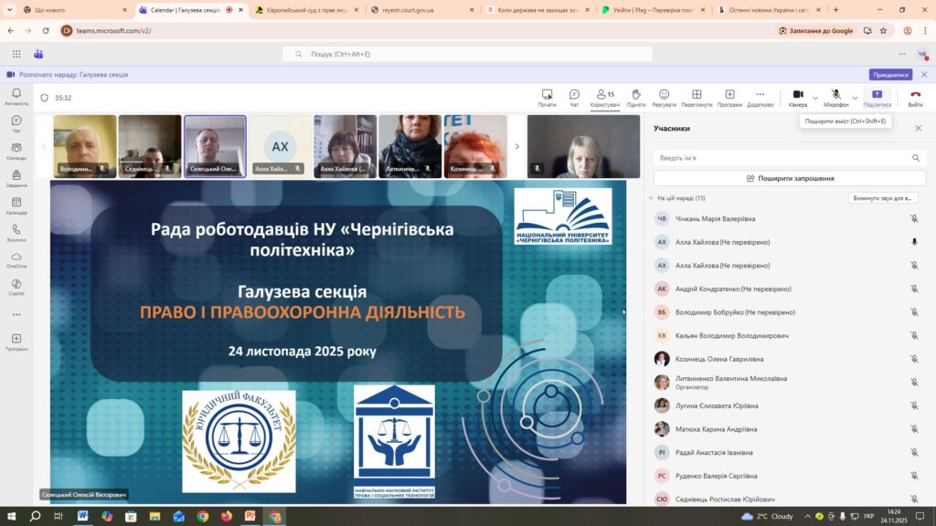 24 листопада 2025 року відбулося чергове засідання Галузевої секції «Право і правоохоронна діяльність» Ради роботодавців Національного університету «Чернігівська політехніка». Учасники засідання — представники юридичних установ та організацій, […]